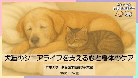 犬猫の寿命は獣医療の発達や飼育環境の変化等により伸びています。そこで、シニア期を迎えた犬猫の看護や介護等のケアでよくある相談、ペットのグリーフケアについて、麻布大学の小野沢先生がお話します。