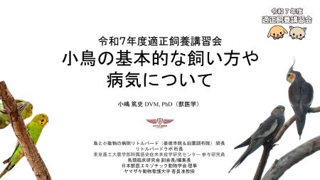 犬や猫に比べ、小鳥は飼い方や病気に関する情報はまだまだ少ない状況です。小鳥を飼っている方やこれから飼おうと考えている方などに向け、基本的な知識や健康管理の方法、飼育にあたっての注意点などについて、鳥と小動物の病院リトルバード院長の小嶋先生がお話します。