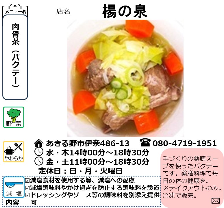 西多摩保健所管内の「からだ気くばりメニュー店」