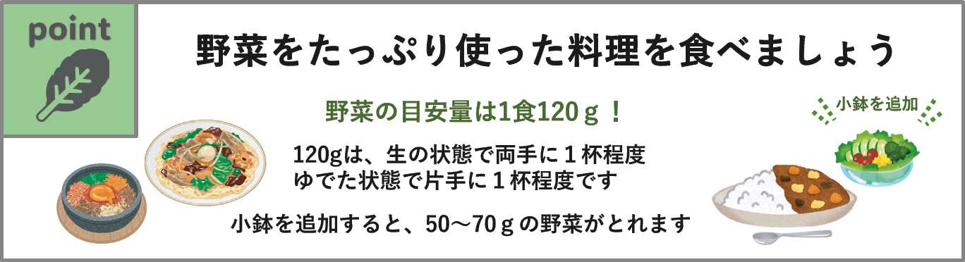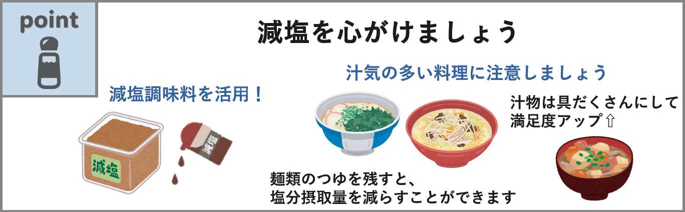 健康を維持するためには、「栄養バランス」「野菜摂取」「減塩」に配慮した食事をとることが大切です。このたび、給食施設等で掲示していただくための普及啓発用ポスターを作成しました。下記よりポスター及び項目別データがダウンロードできます。施設内での掲示や各種お便りへの掲載などに、ぜひご活用ください。