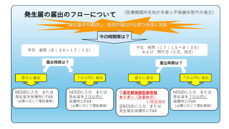 保健所への届出は、感染症サーベイランスシステム(NESID)又はFAX(042-450-3261)によりお願いします。