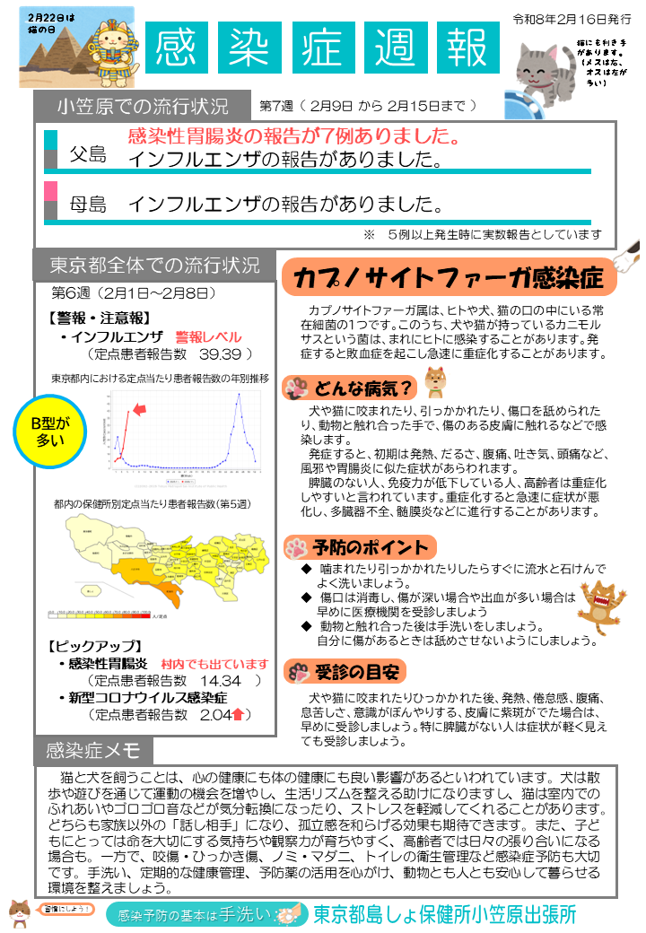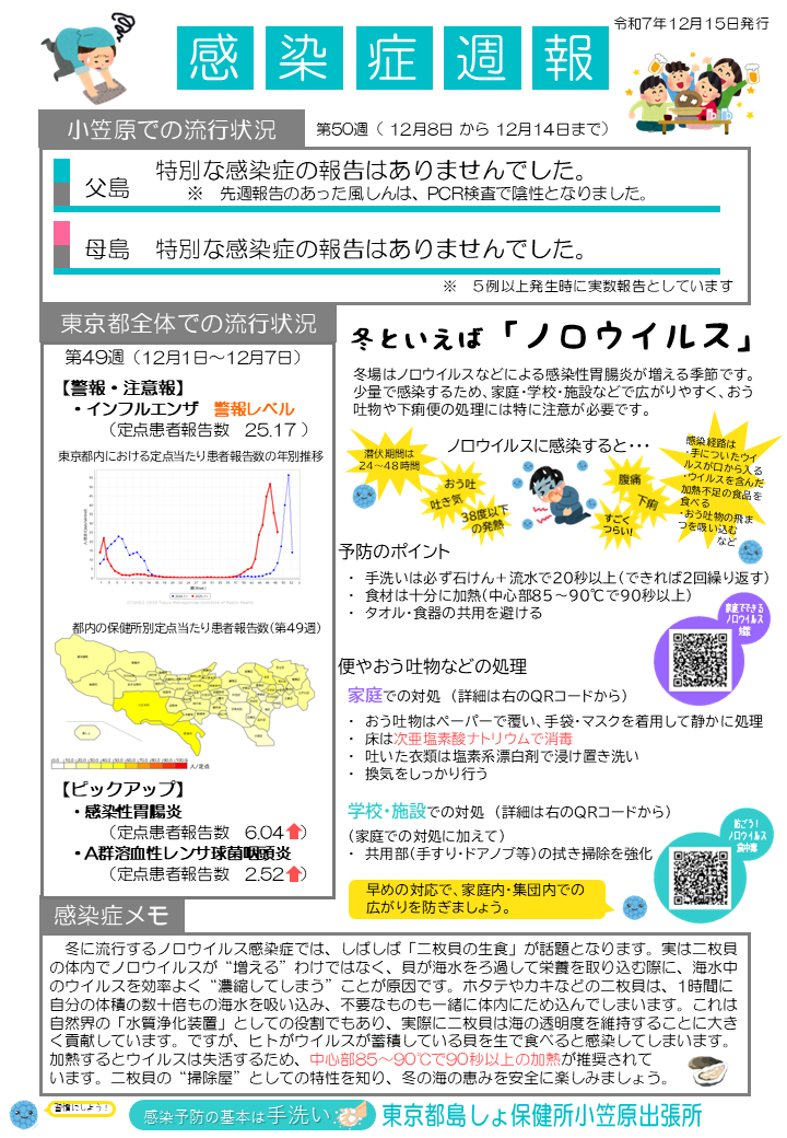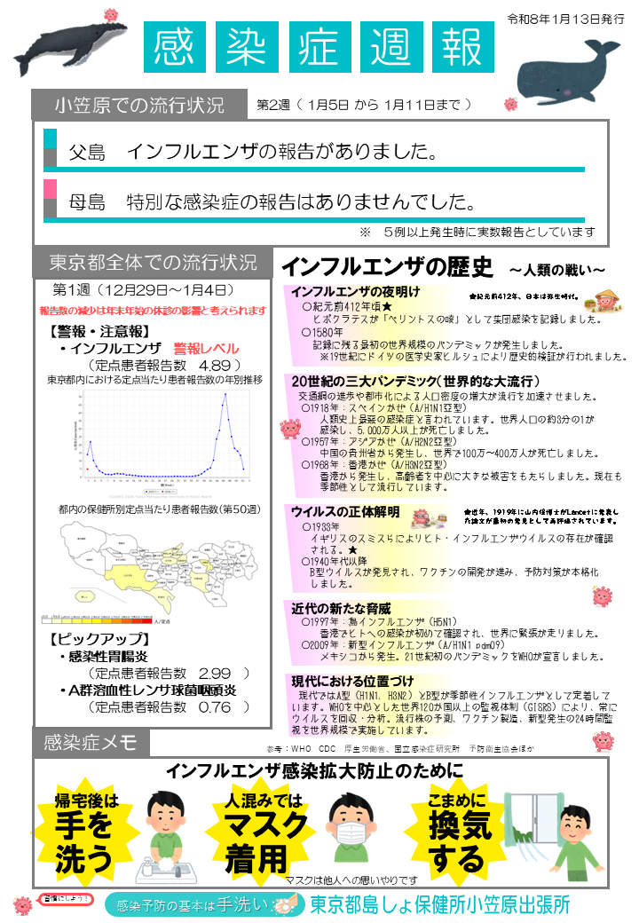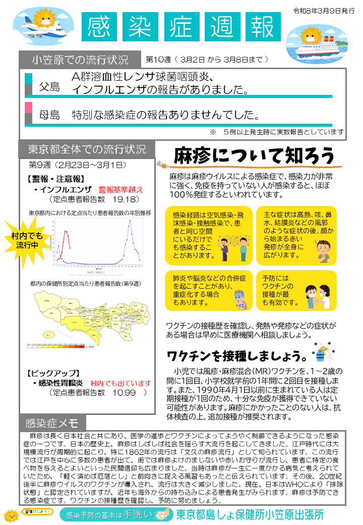 小笠原村管内(父島・母島)で報告されている感染症についてお知らせいたします。