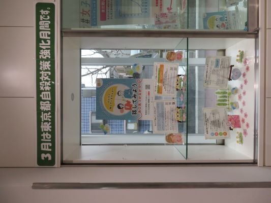 3月の多摩立川保健所は、『自殺対策強化月間』と『女性の健康週間』の二つをテーマに、ギャラリー展示を行っています。リーフレットやポケットティッシュなどの普及啓発資材を、来所者に自由にお持ち帰りいただいております。